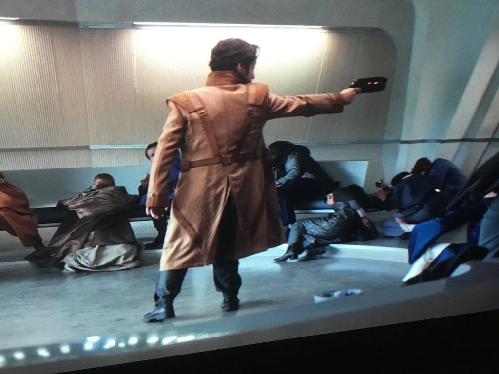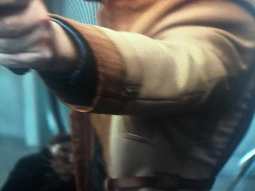 • Brown suede piping across the front torso in cross shape, and back torso (as per mock & references)